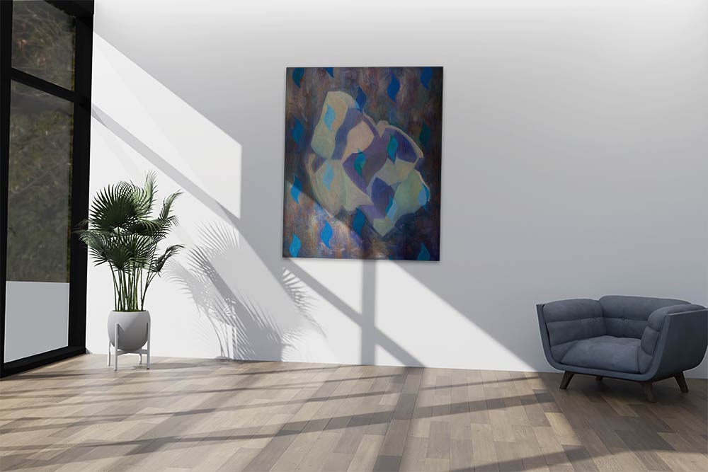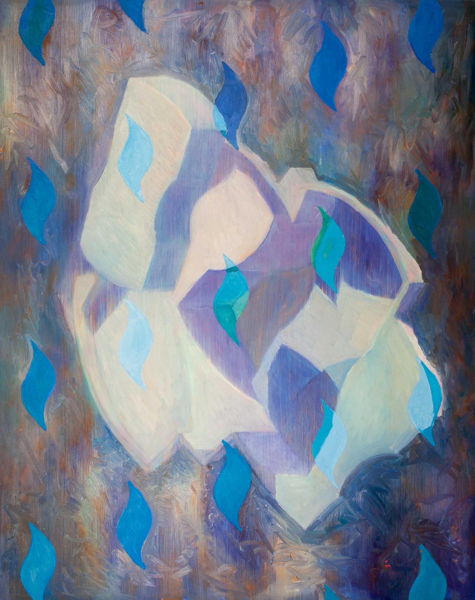 Das Gemälde "Ätherische Präsenz" zeigt eine zentrale, amorphe Form in hellen, fast