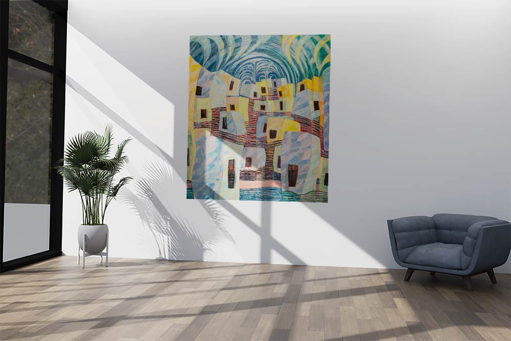 "Das Dorf der Träume" entführt den Betrachter an einen Ort der Ruhe und Harmonie.