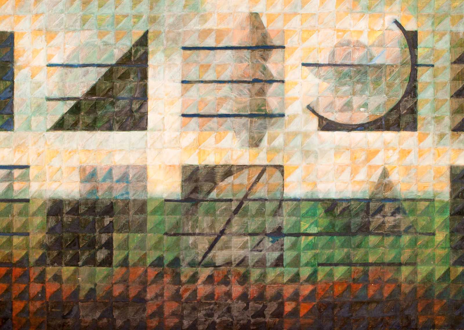 Das Gemälde "Das unvollständige Panorama" zeigt eine abstrakte Landschaft, die