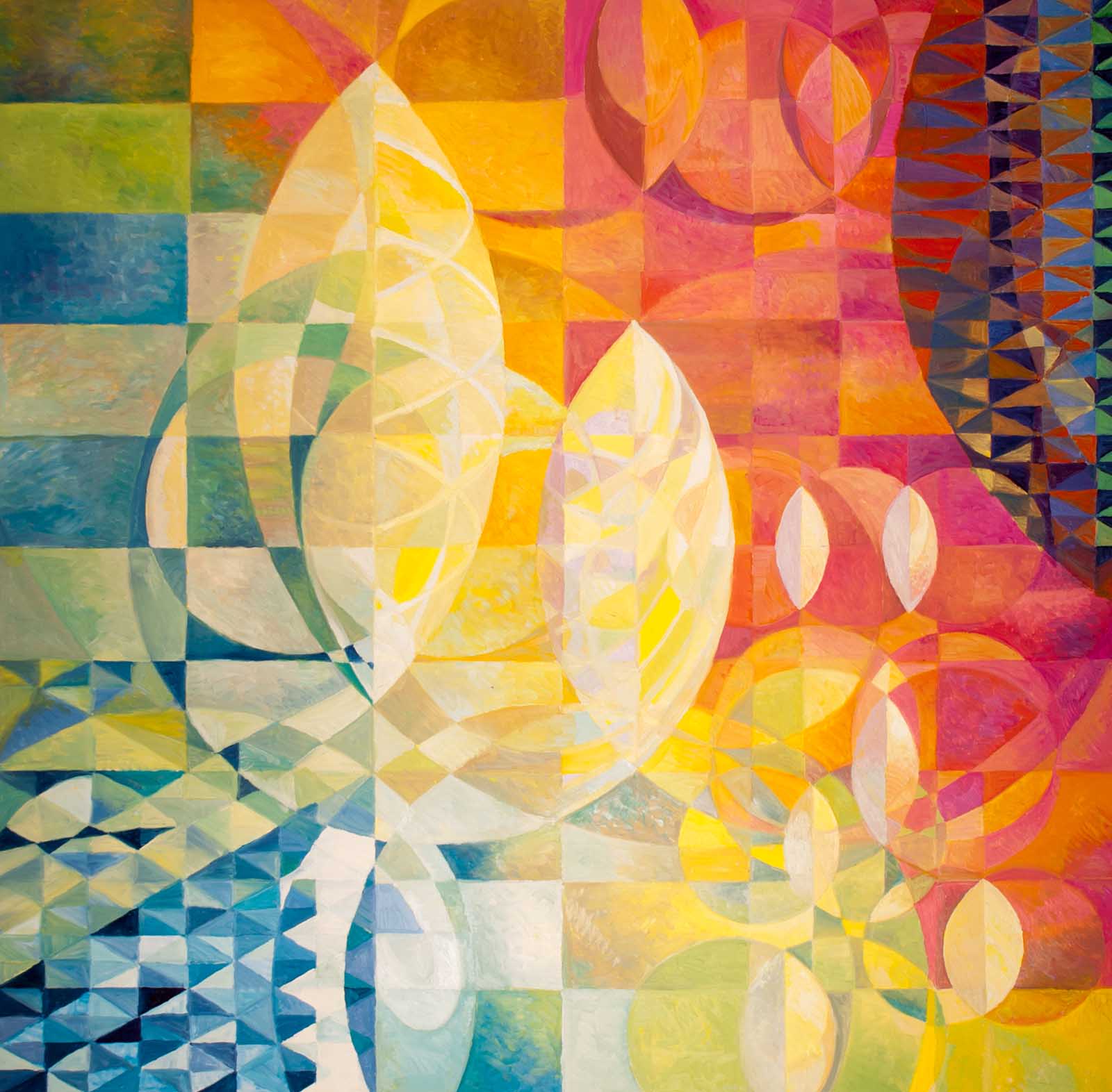 Das Gemälde "Lebendige Formen" präsentiert eine farbenfrohe und dynamische