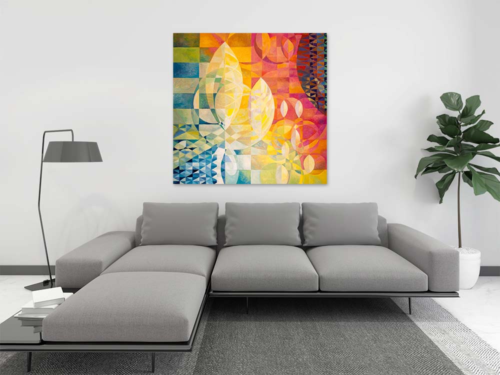 Farbpalette reicht von warmen Gelb-, Orange- und Rottönen, die an Sonnenlicht und