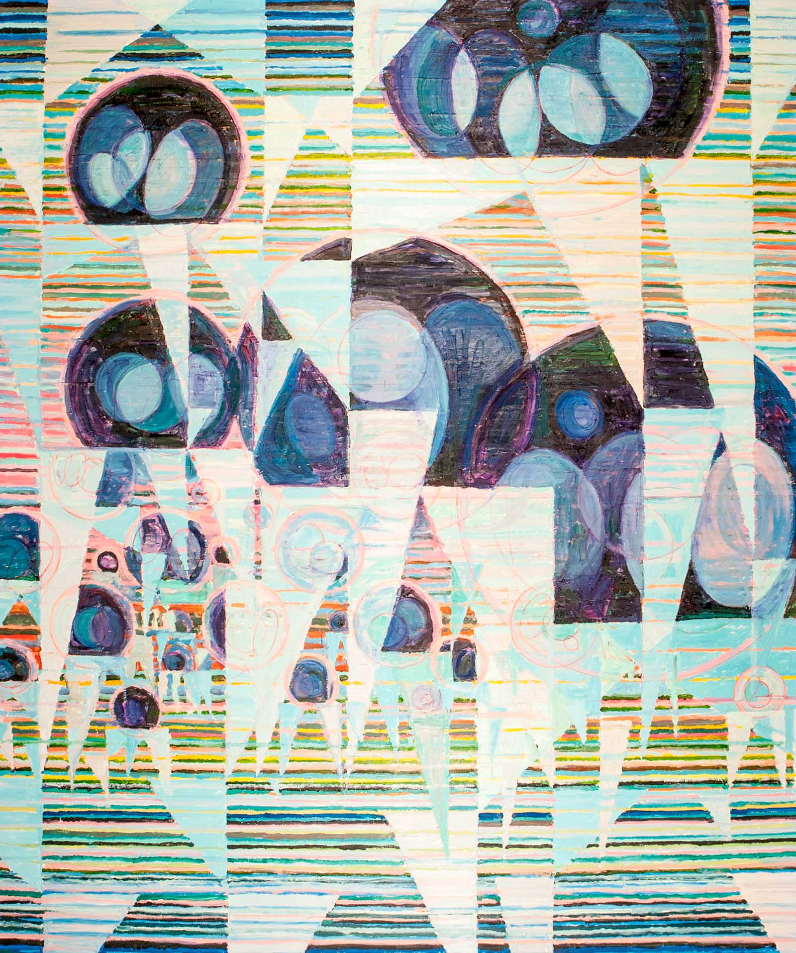 Abstrakte Kunst, Geometrische Formen, Wassertropfen, Streifen, Türkis, Blau, Rhythmus, Bewegung, Transparenz, Lichtspiel, Dimensionen, Zeitlosigkeit