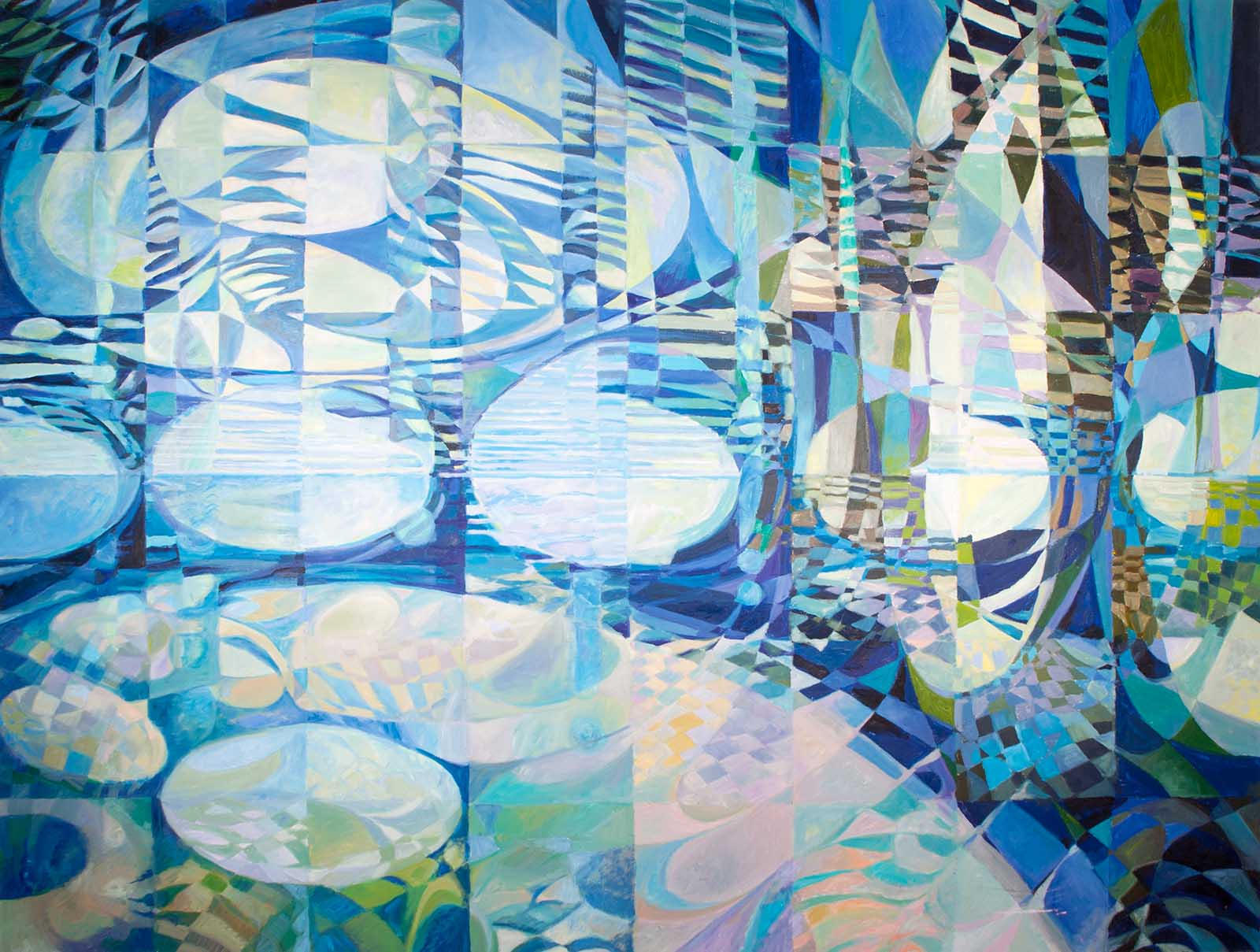 fließenden Farbenspiel, das an Wasser, Wellen und Spiegelungen erinnert. Runde