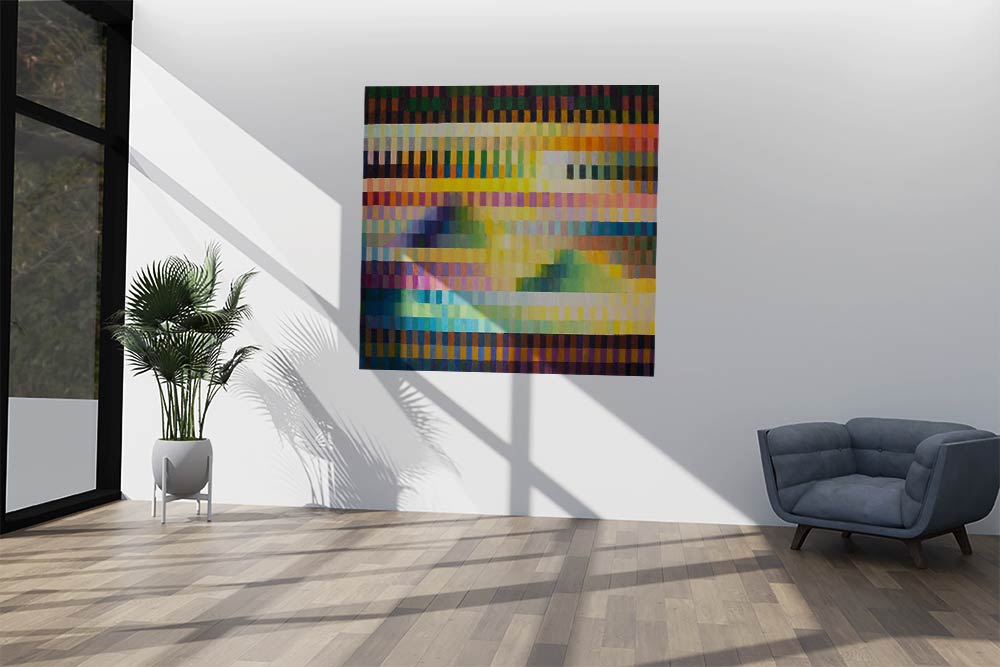 Das Gemälde besteht aus einer Vielzahl von horizontalen Streifen in