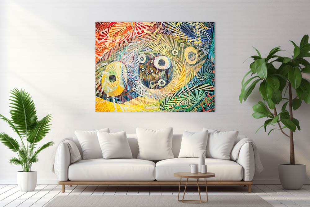 "Weltenauge" zelebriert, in einer kraftvollen Darstellung, das Wunder des Sehens und die Vielfalt des Lebens, eingefangen im Fokus eines alles umfassenden Auges. Der Künstler spielt mit der Wahrnehmung.