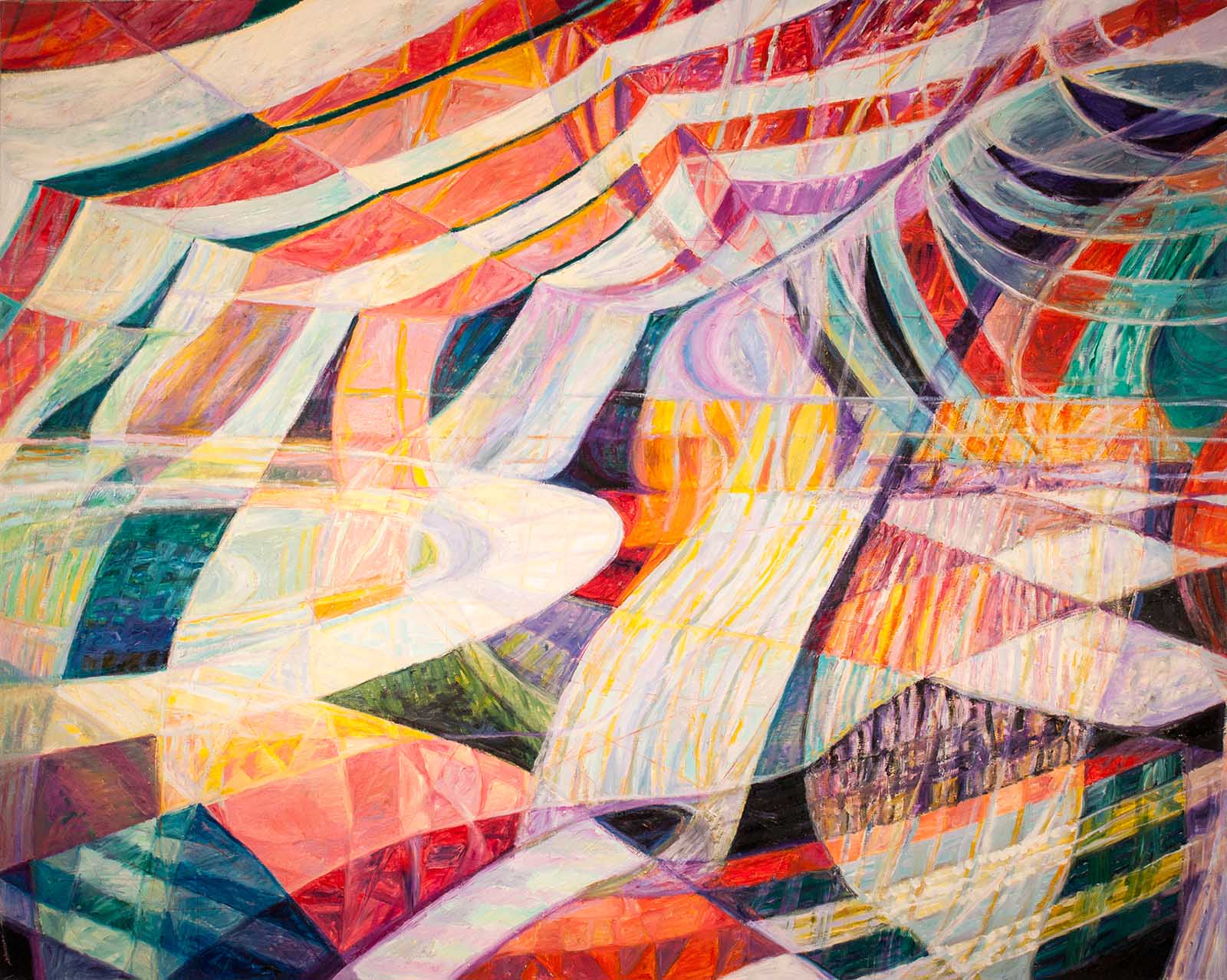 Das Werk des Künstlers zeigt ein komplexes Spiel aus Linien und Farben. Die Komposition