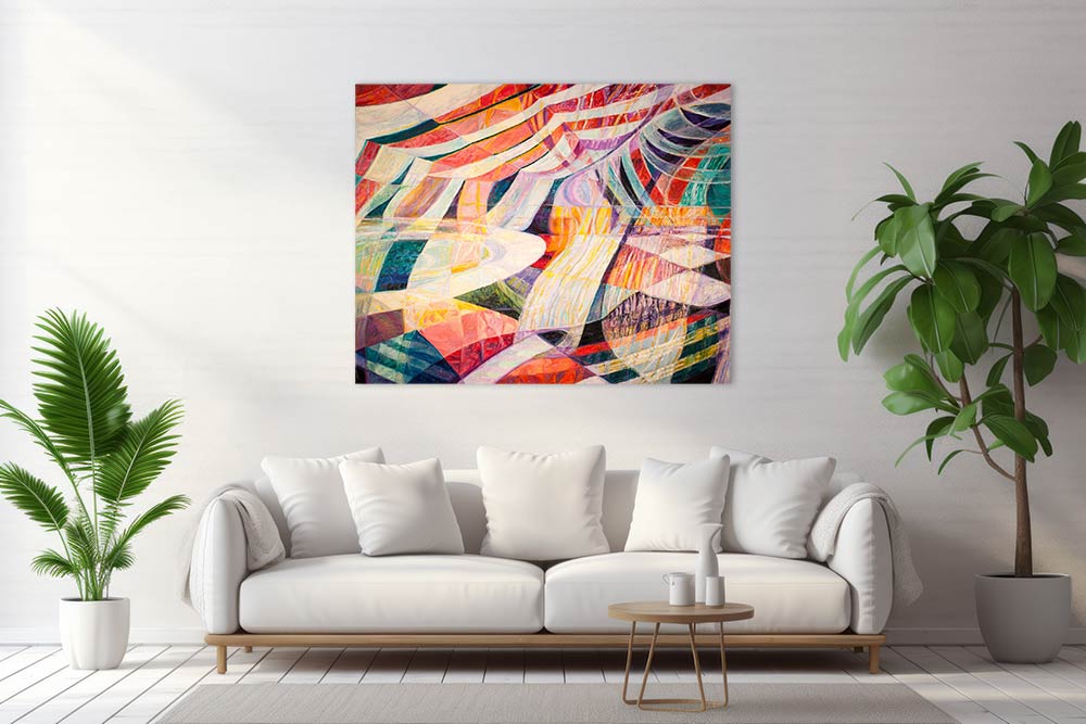 Das Werk des Künstlers zeigt ein komplexes Spiel aus Linien und Farben. Die Komposition